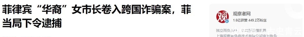 34. 观察者网:菲律宾“华裔”女市长卷入跨国诈骗案,菲当局下令逮捕 2024-07-15